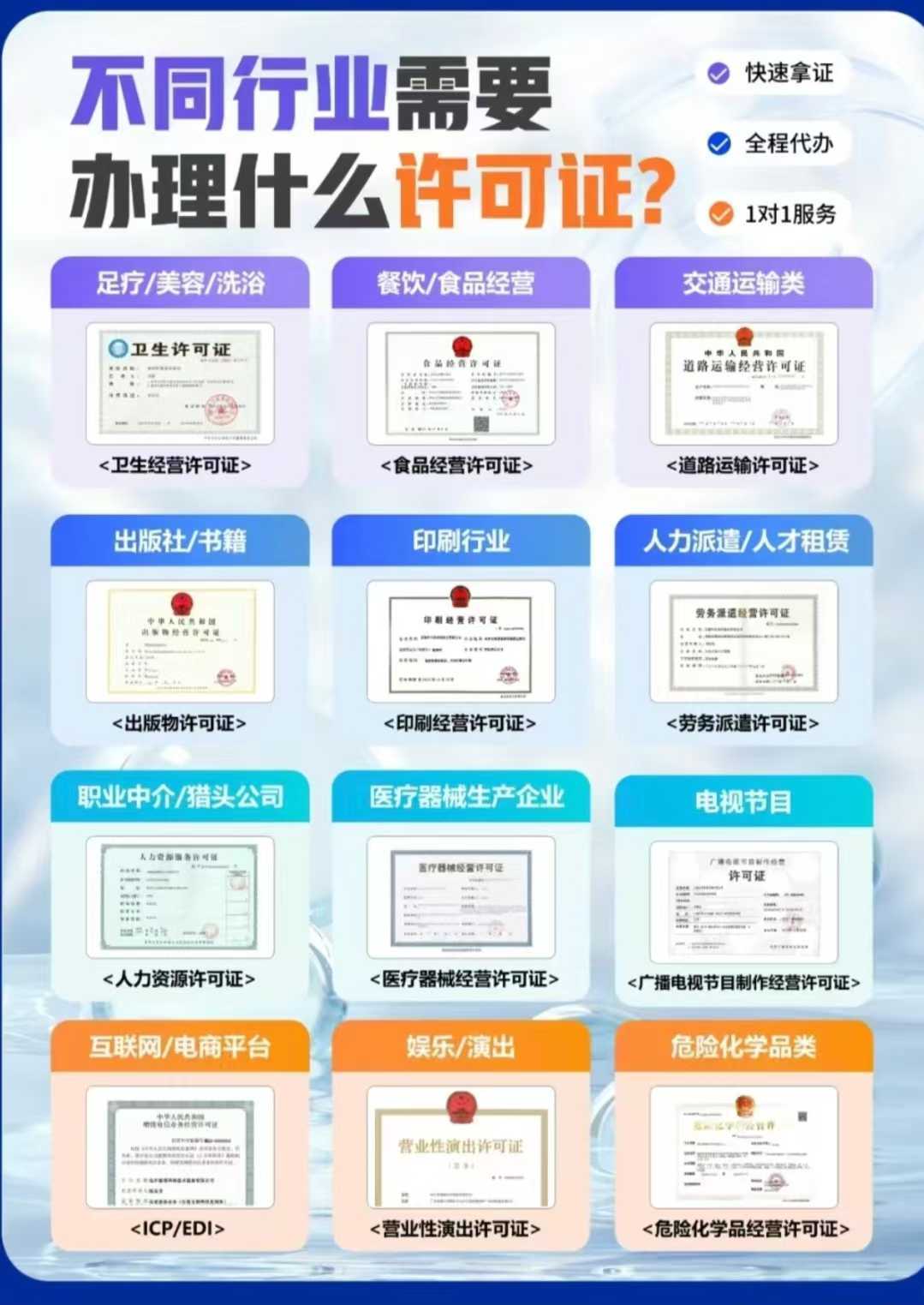 **电视节目制做运营许可证、预包拆食物存案、道运输运营许可证**等营业打点办事十分全面。跟着食物行业的规范成长,才能博得客户的信赖和市场的承认。成为企业合规运营、稳健成长的主要支持。正在电视节目制做运营许可证打点方面,公司从停业务中的电视节目制做运营许可证打点?