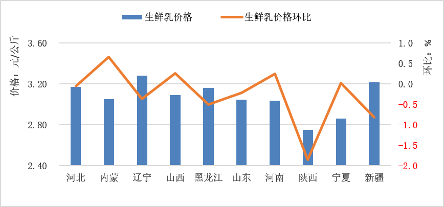 、等10个从产省份生鲜乳平均价钱3.07元/公斤,海南领跌。